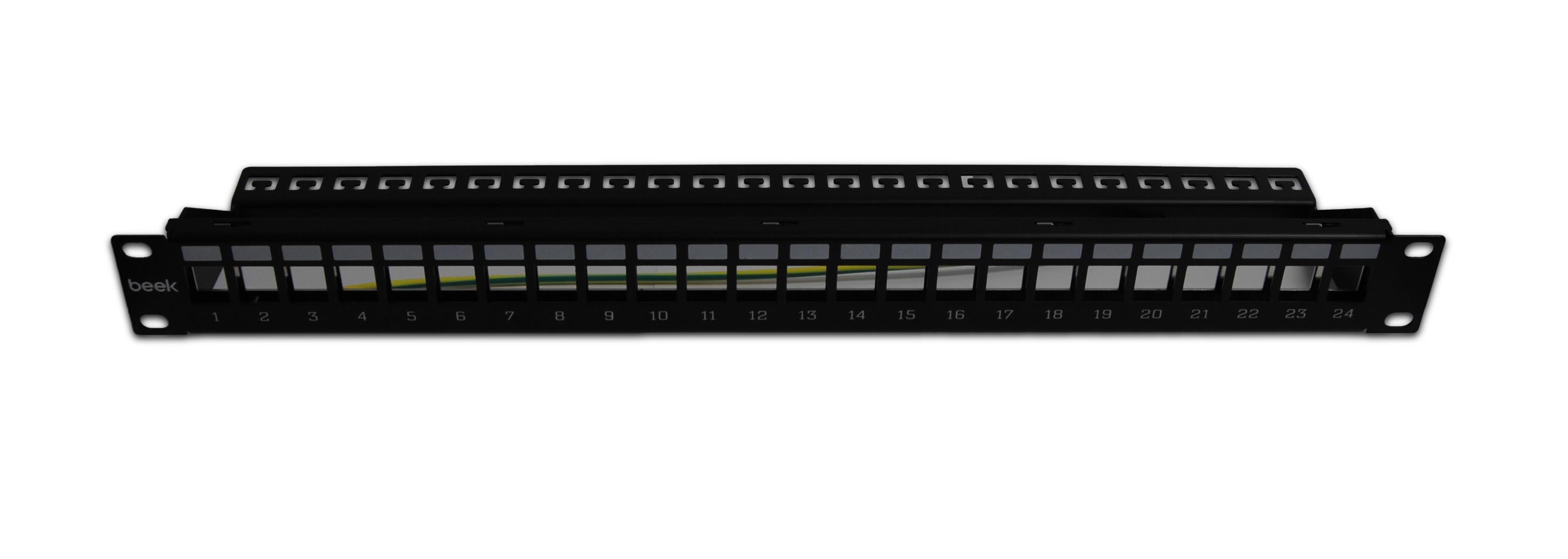 Beek 19" 1U 24 port Modüler Patch Panel, Zırhlı/Shielded (Keystone Jacklar haricen temin edilmelidir)<br> Beek 19" 1U Modular Patch Panel, 24-port Shielded (keystone jacks not included)