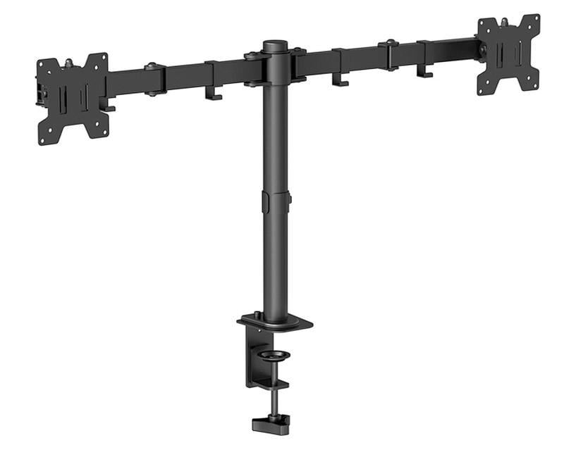 Beek Çift Ekran Taşıyabilen Askı Aparatı, Kelepçe Dahil, Maksimum 17-32 inç Ekran, Eğim Aralığı +45°~-45°, Dönme Aralığı +90°~-90°, Ekran Döndürme +180°~-180°, Maksimum Yük Kapasitesi 2 x 8kg, VESA 100 x 100mm, Siyah Renk<br> Beek Dual Monitor Stand with Clamp Mount 17"-32", 2x 8 kg (max.), black