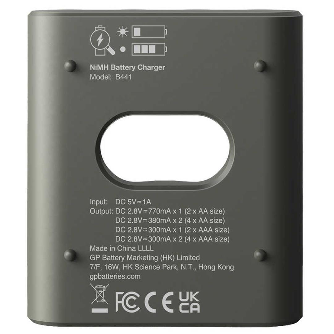 GP Recyko B441 Usb 4’lü AA - AAA Pil Şarj Cihazı; aynı anda dört adet AA pili şarj eden güvenlik ve teknik özelliklere sahip akıllı kompakt bir şarj cihazıdır. Cihaz 3 saatte bir USB portu üzerinden AA veya AAA pili şarj eder. Şarj ilerlemesi, şarj durumunu ve tek kullanımlık pillerin veya arızalı şarj edilebilir pillerin takılıp takılmadığını gösteren LED ekran üzerinden takip edilebilir. "Pil durumu kontrolü" bu şarj cihazının yeni bir özelliğidir. Bu özellik, pillerinizin hala yeterince şarj olup olmadığını veya şarj edilmesi gerekip gerekmediğini hızlı ve kolay bir şekilde kontrol etmenizi sağlar. Bu nedenle, boşalmış pillerle ilgili beklenmedik durumları önleyebilir ve pillerinizin gereksiz yere şarj edilmesini önleyebilirsiniz. Kutu İçeriğinde dahili pil bulunmamaktadır.