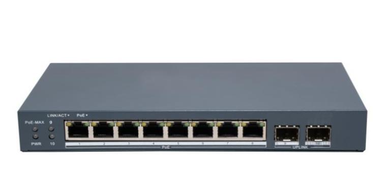 8 adet Gigabit PoE portu, 2 adet Gigabit fiber optik portu