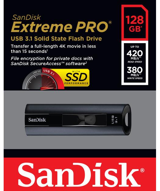 SanDisk Extreme PRO USB 3.1 Solid State Flash Drive 128GB (SDCZ880-128G-G46)