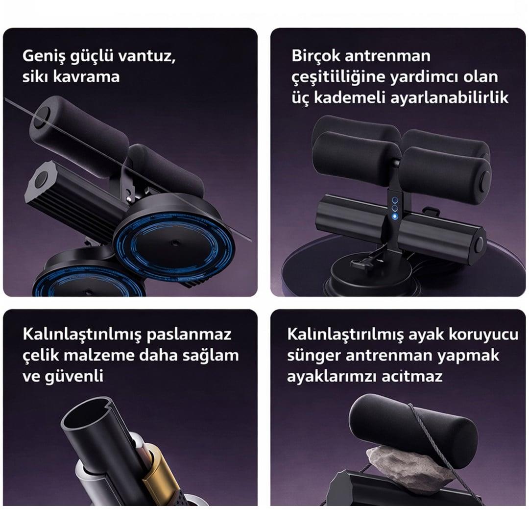 Sunup SN-29962 Çift Vantuzlu Ev Tipi 3 Kademe Boy Ayarlı Mekik - Karın Egzersiz Aleti; evde pratik ve etkili antrenman yapmak isteyenler için tasarlanmış kompakt bir fitness ekipmanıdır. Güçlü vakum tabanı sayesinde zemine sağlam şekilde sabitlenir ve mekik, plank, şınav gibi birçok egzersizi daha verimli ve güvenli hale getirir. Ayarlanabilir yapısı sayesinde farklı boy ve antrenman seviyelerine uyum sağlayarak karın, bel ve core kaslarını hedefleyen etkili bir egzersiz deneyimi sunar